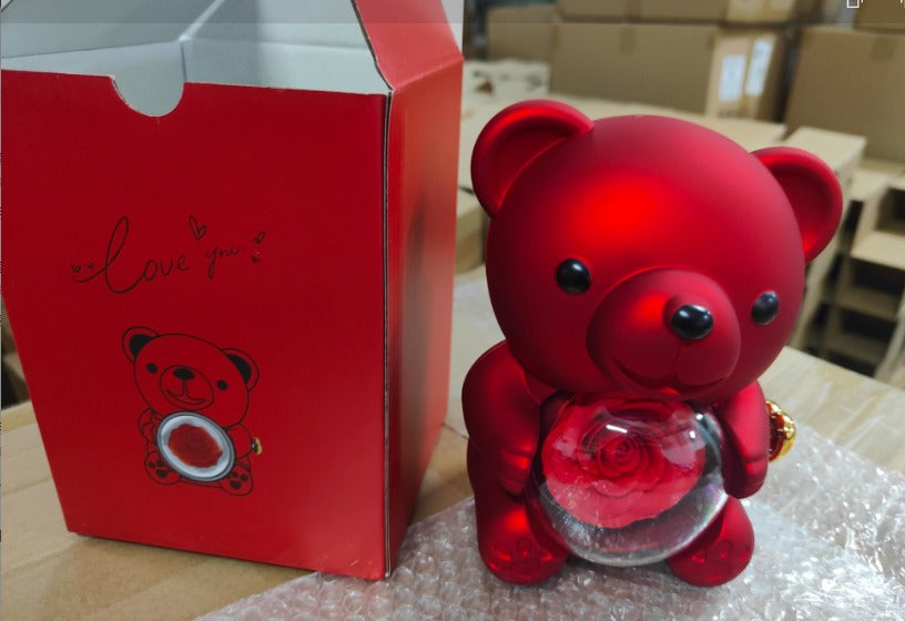 Sevginizi en özel şekilde ifade edin! Zarif kırmızı ayıcık tasarımı, içinde yer alan cam küre ve gerçek görünümlü kırmızı gül ile romantizmi bir araya getiriyor. Sevgililer Günü, doğum günü, yıl dönümü veya özel bir sürpriz için mükemmel bir hediye.